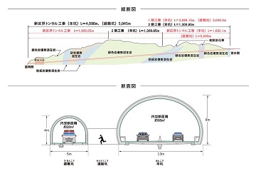 復興支援道路宮古盛岡横断道路 新区界トンネルは、岩手県宮古市区界地区〜盛岡市簗川地区間における延長4,998mの本坑と5,045mの避難坑及び避難連絡坑13本をNATMによる長大道路トンネルである。 復興支援道路のため、本坑を早期掘削が求められており、そのためフルオートコンピュータージャンボ等を利用した地山評価技術による合理化情報化施工を実施した。 具体的には発破用穿孔とロックボルト穿孔時に破壊エネルギーを取り、そのデータより地山強度分布の統計学的解析による地山評価と補助工法の選定及び予測結果を技術者と作業員で共有し、安全性と品質を向上させ工期短縮し無事終了することが出来た。 |