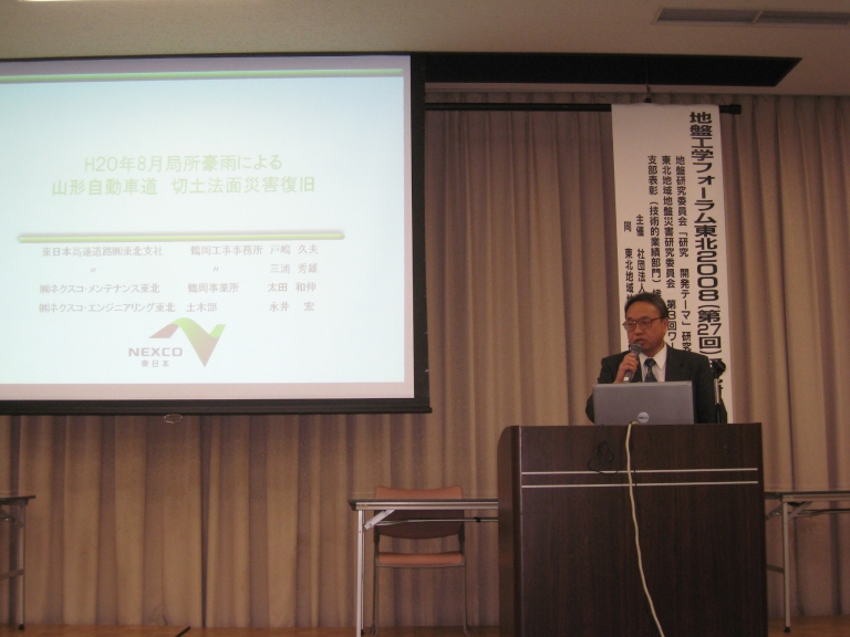 | 最後に,平成20年度地盤工学会東北支部表彰(技術的業績部門)候補による7件の発表が行われました. これは支部表彰の審査を兼ねた発表で,本フォーラムでは今回が初めての企画です. どの発表者からも大変興味深い技術報告がなされ,活発な質疑応答が行われました. |
